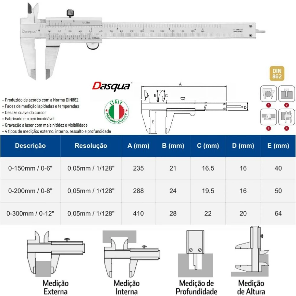 - Dasqua 1120-3130 mekanik kumpas 0 - 300 mm arasında ölçüm yapabilmektedir.