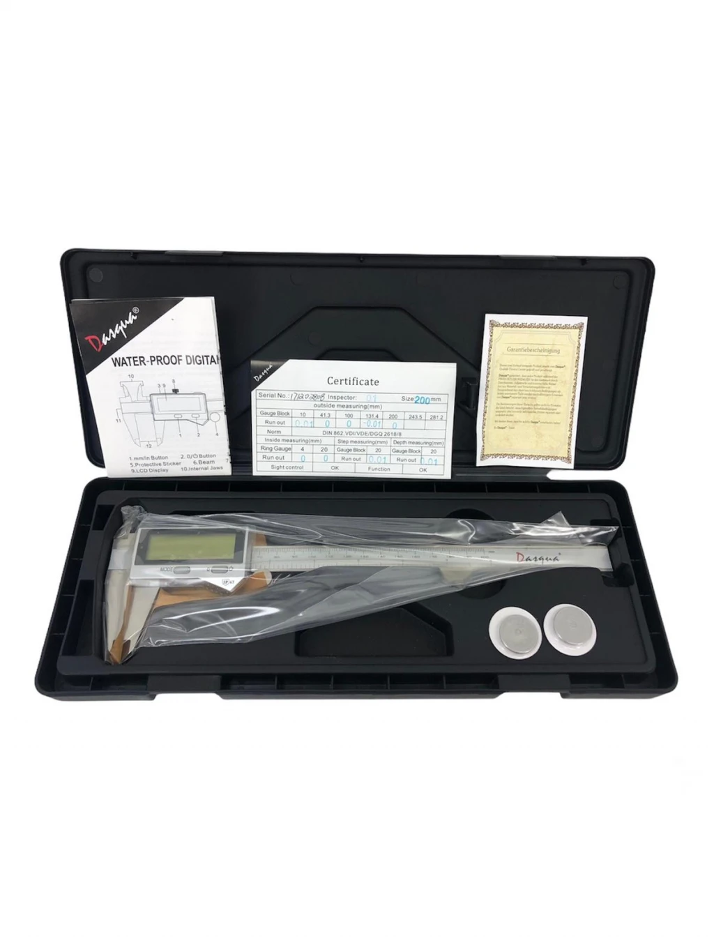 DASQUA 2610-8110 Su Geçirmez Dijital Kumpas, hassas ölçüm gerektiren endüstriyel uygulamalar için geliştirilmiş profesyonel bir ölçüm aletidir.