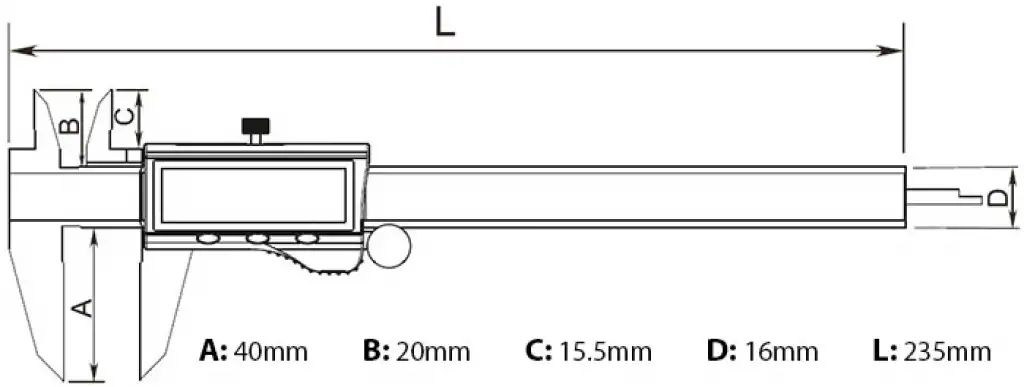 - Bu kumpasın mm ve inch ölçebilme fonksiyonu sayesinde iki farklı ölçüm birimi ile ölçüm yapabilirsiniz.
