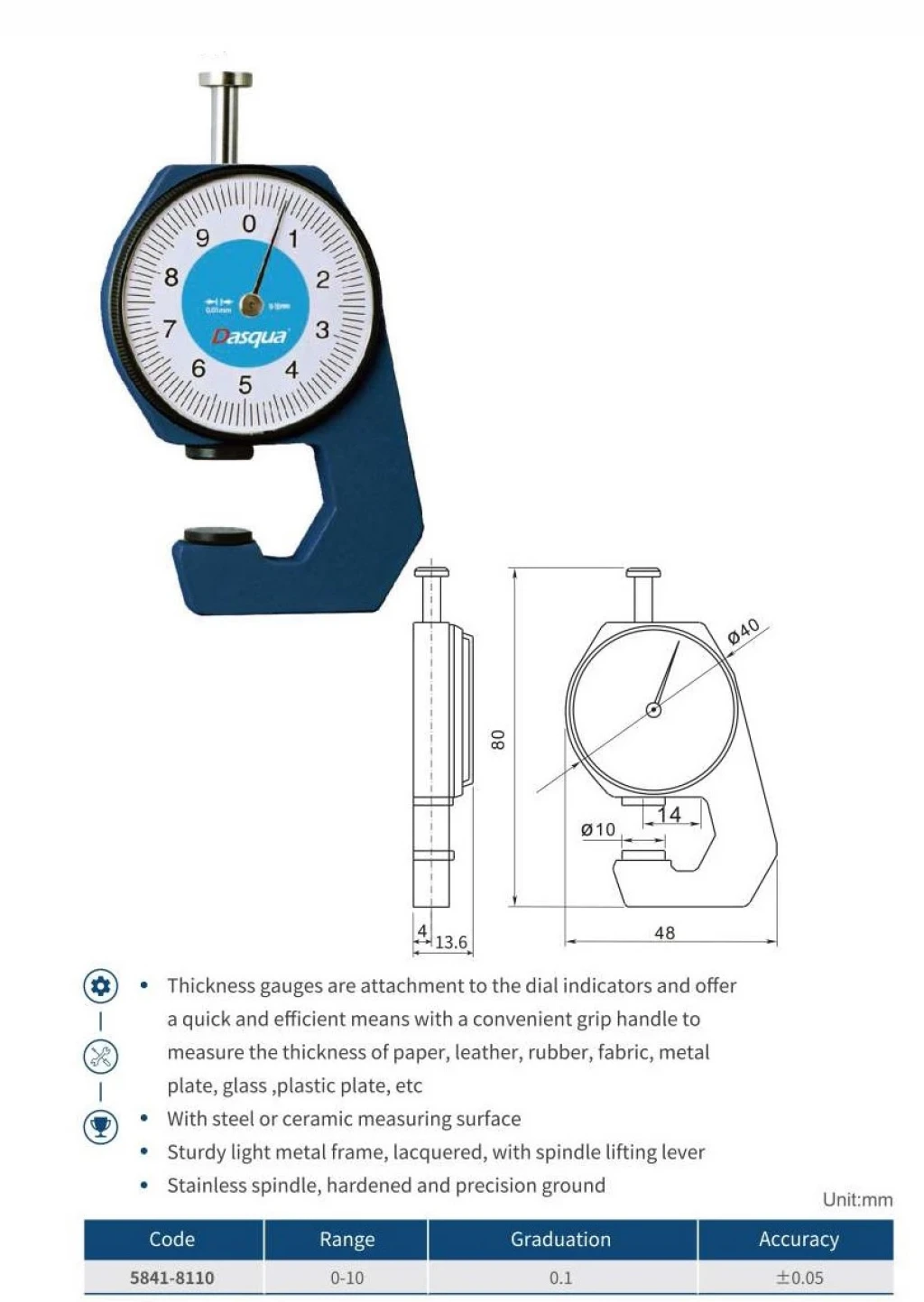 Ürün AçıklamasıKalınlık göstergeleri kadran göstergelerine takılıdır ve kağıt, deri, kauçuk kumaş, metal plaka, cam, plastik plaka vb.nin kalınlığını ölçmek için kullanışlı bir tutma koluyla hızlı ve etkili araçlar sunar.