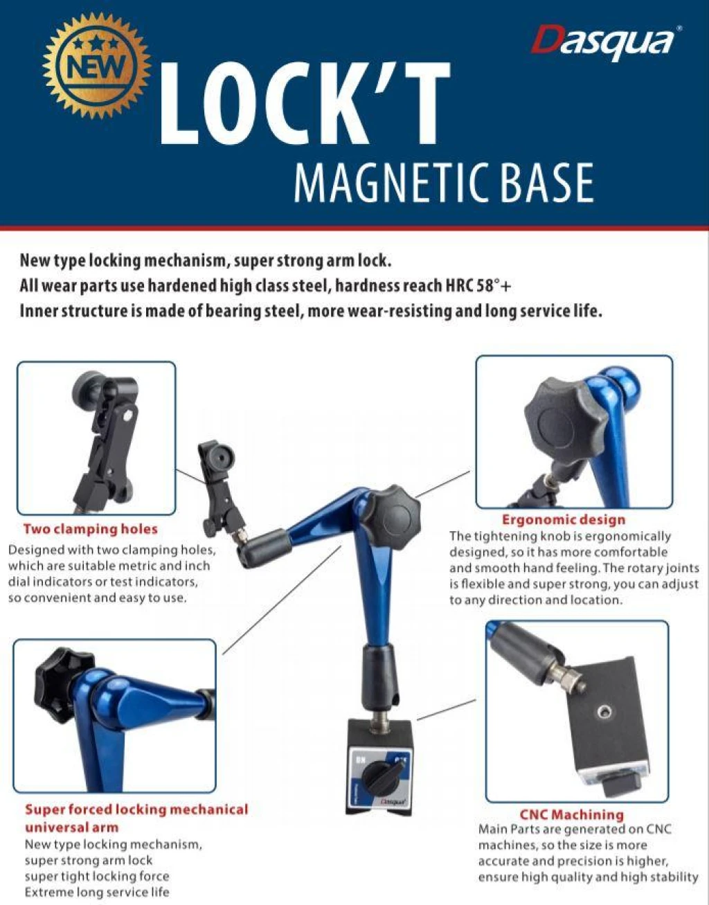 DASQUA’nın endüstriyel kalite standartlarına uygun olarak üretilen bu manyetik stand; torna, freze, CNC tezgâhları ve kalite kontrol istasyonlarında profesyonel kullanım için uygundur. Uzun ömürlü yapısı sayesinde yoğun atölye koşullarında bile performansını korur.